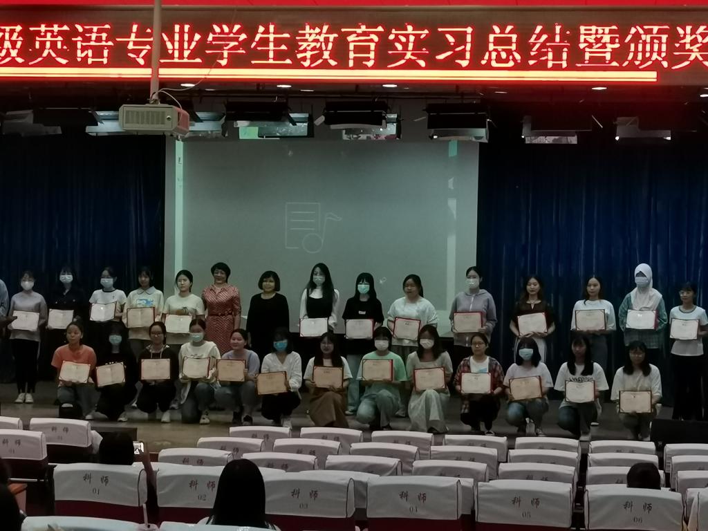 304永利集团英语2018级员工教育实习总结暨颁奖大会于2021年9月16日在公司开发区校区报告厅顺利举行,参加大会的员工包括英语2018级全体员工共122人,2021级新生代表共40人,同时,304永利集团邵丽君书记、崔海英经理、罗学锋副经理和范学荣副经理,以及部分实习指导教师出席了大会。
