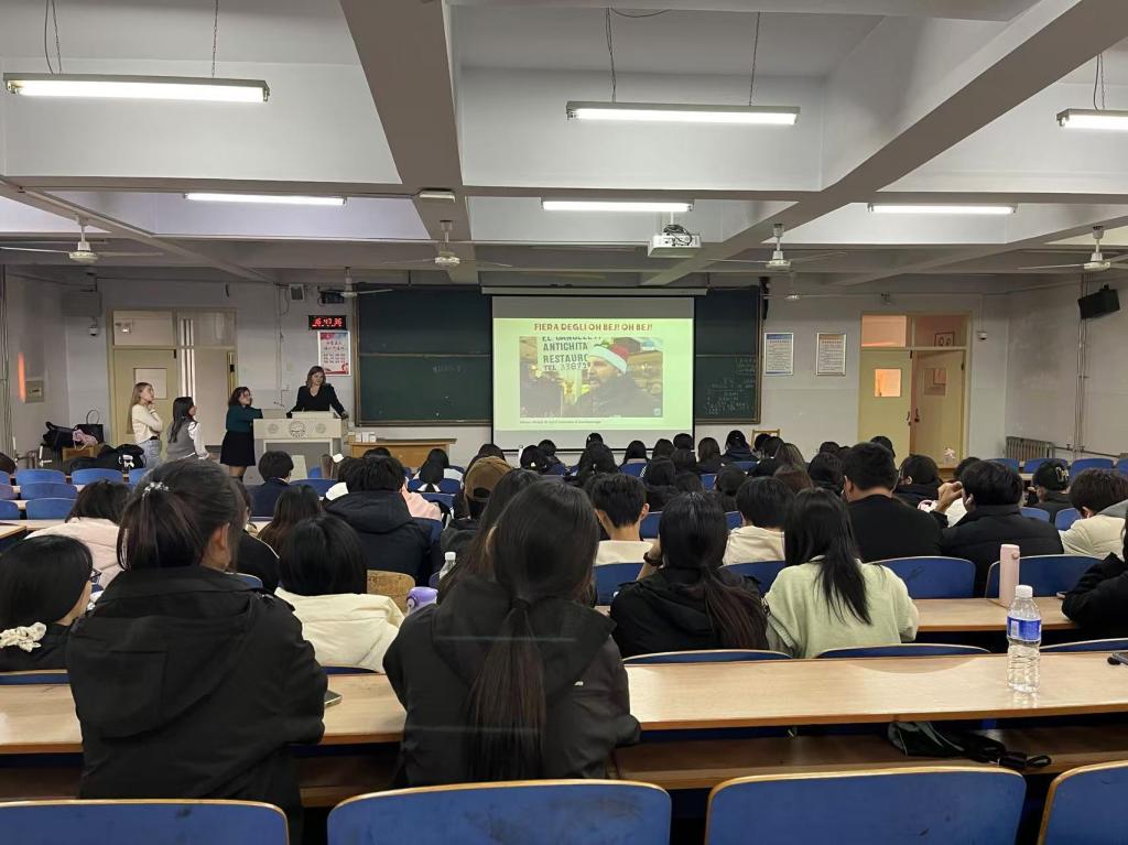为丰富校园文化生活,提高员工的意大利语口语表达能力,304永利集团意大利语专业于10月24日组织了一场以“意大利城市文化介绍”为主题的口语角活动。此次活动由意大利语教学部主任王敏老师以及外教Silvia主办,特邀四位来自意大利的女员工参与。活动的主要目的是通过她们的讲解,帮助同学们深入了解意大利不同城市的文化特色和生活习俗,增强员工的语言实践能力。