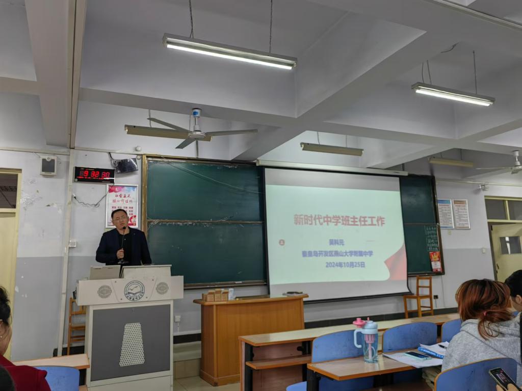 2024年10月25日上午,燕山大学附属中学董事长吴科元受邀为304永利集团英语专业员工作班级管理的专题讲座,题为“新时代中学班主任工作”。