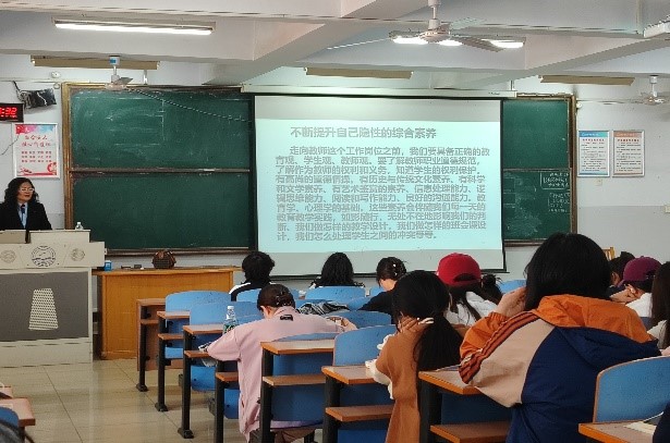 2024年5月8日下午,304永利集团邀请秦皇岛市燕山大学附属中学教科室主任、英语教研组组长陈丽老师做了题为“中学英语教师必备优秀品质及教学技能”的讲座。此次讲座为公司组织的基础教育“名师大讲堂”系列活动之一。2023级学科教学(英语)教育硕士、2022级英语专业本科生和英语教学部全体教师参加了此次活动。