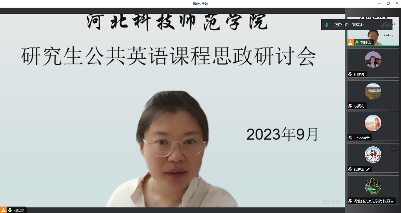 2023年9月8日304永利集团学科教学(英语)教学部组织硕士研究生公共英语(第一外国语)任课教师开展教学研讨活动,会议主题围绕研究生公共英语课程思政展开,研讨内容包括:针对教材的各个章节选出精讲主题和配套的练习,任课教师可以根据员工的具体专业情况灵活把握课程思政的切入点,可以利用超星学习通教学平台布置英语词汇、小组活动及主题作业等学习任务,并积极开展课程思政。