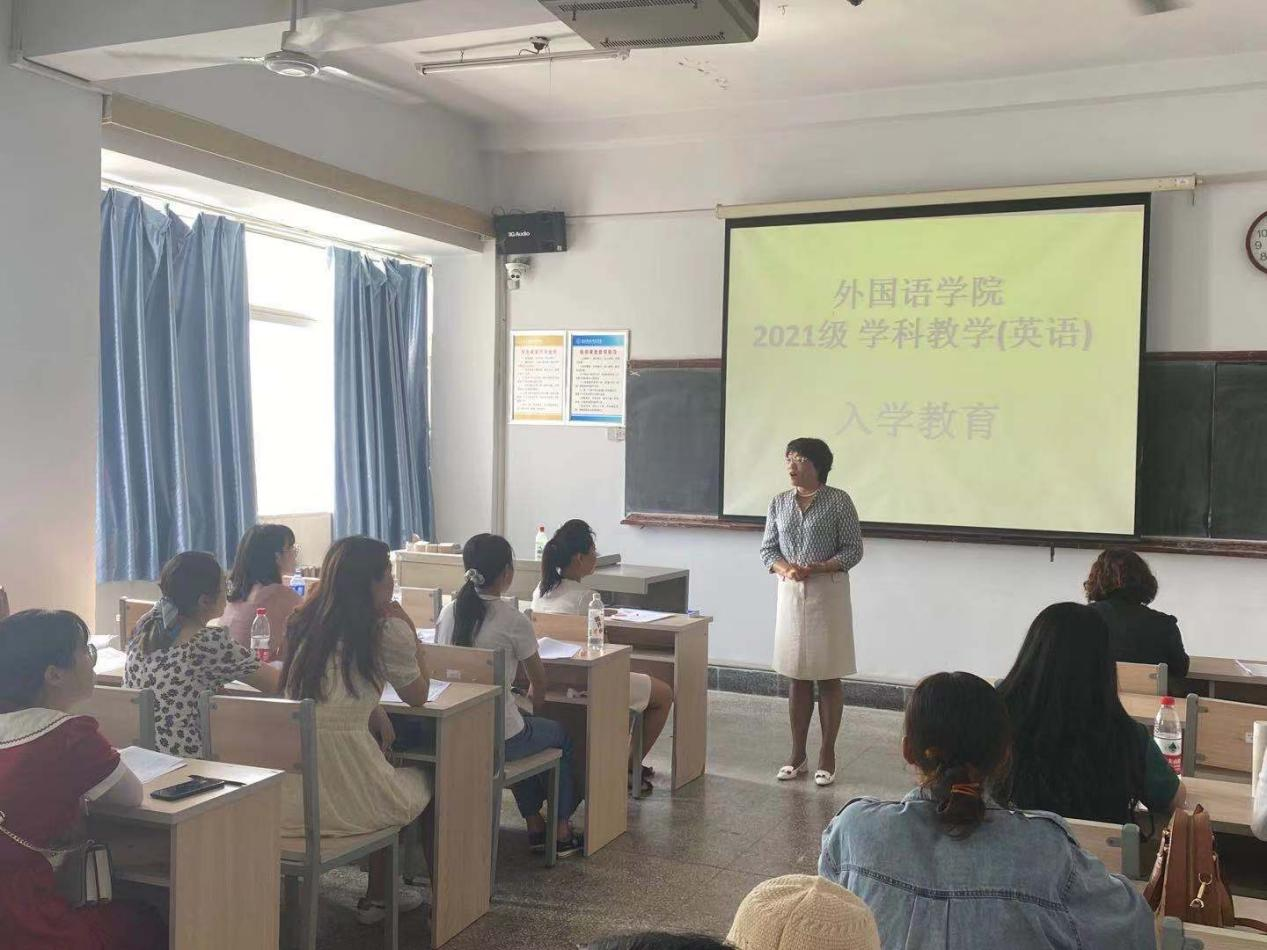 2021年9月10日上午304永利集团在秦皇岛校区举行了硕士研究生新生入学教育,参加本次活动的有:304永利集团经理崔海英、书记邵丽君、副经理范学荣、教学部主任刘晓冰、硕士生导师孙秋月、研究生秘书张新月,及全体2021级学科教学(英语)专业硕士研究生。范学荣主持会议,崔海英做了重要发言。