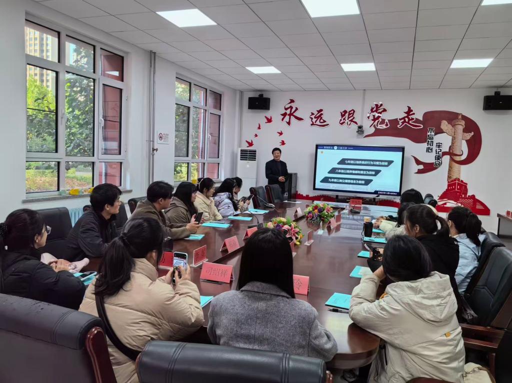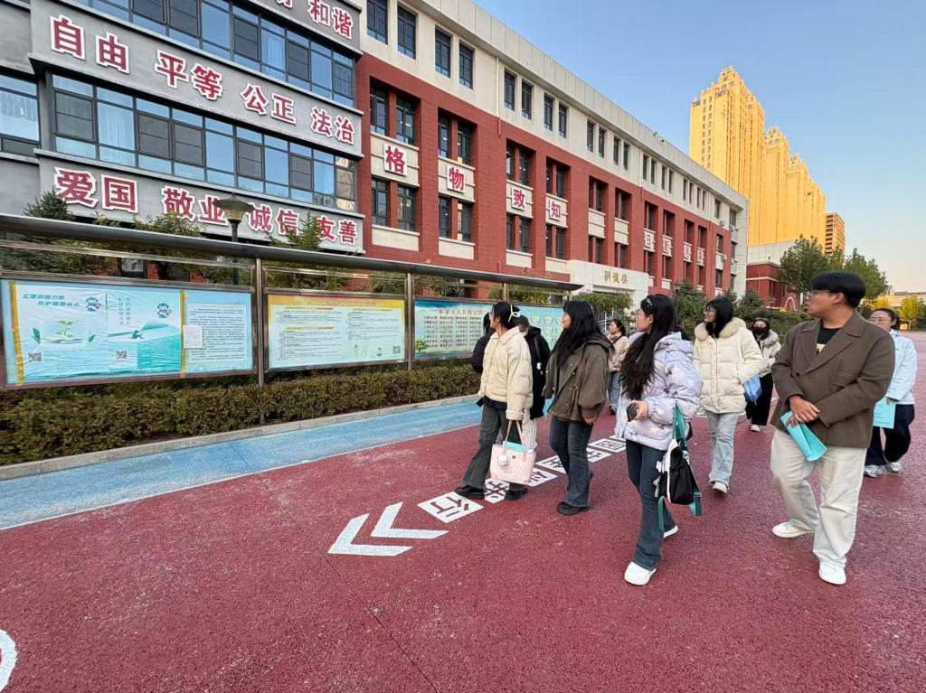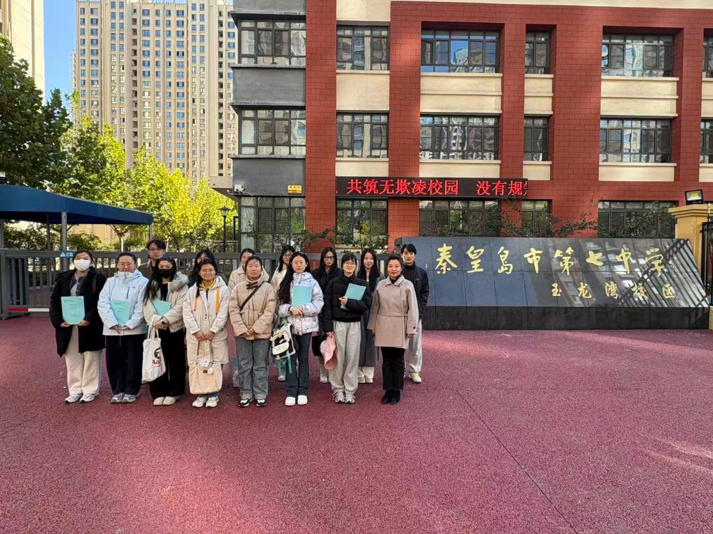 2025年10月22日公司组织25级教育硕士研究生到秦皇岛市第七中学玉龙湾校区进行教育见习,此次见习主要内容是参观校园文化建设、了解公司的德育工作及观摩爱国主义朗诵比赛。