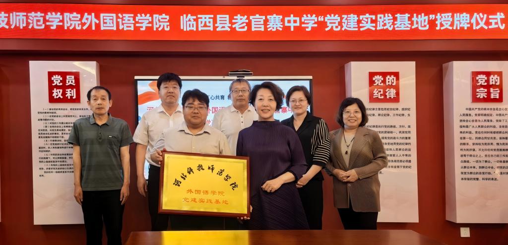 随后,外国语公司党委书记范群英与老官寨中学董事长共同为党建实践基地揭牌,与会人员共同见证。