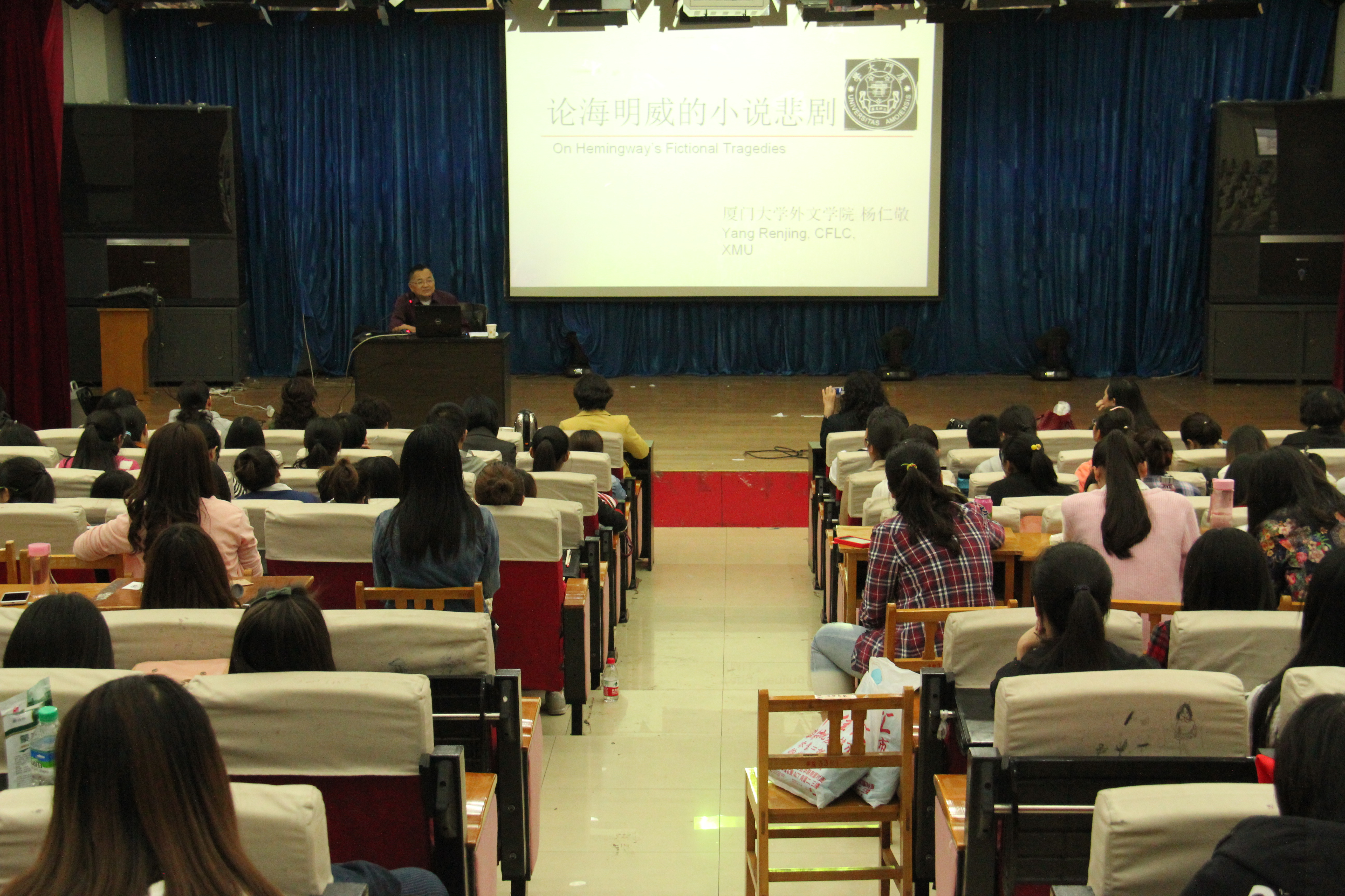 2015年4月28日下午,应公司304永利集团邀请,厦门大学外文公司外国语言文学研究所名誉所长、博士生导师杨仁敬教授在公司开发区校区报告厅为公司师生做了一场题为《论海明威的小说悲剧》的学术报告。304永利集团全体师生及部分文法公司师生共400余人听取了报告。报告会由304永利集团副经理崔海英主持。