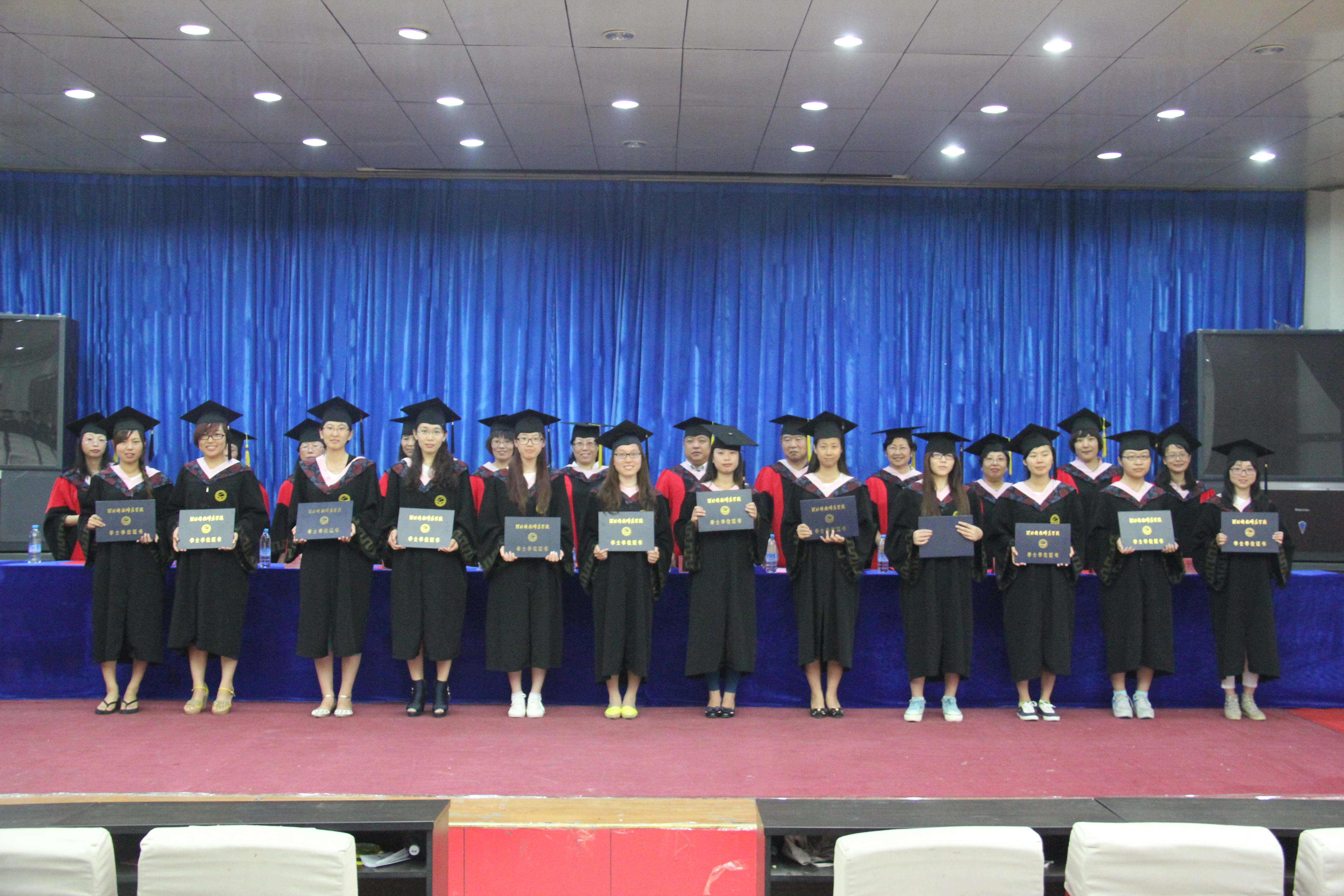 毕业典礼之后,公司举行2014届本科毕业生学位授予仪式。首先崔海英教授宣读学位评定委员会主席的委托词,之后,304永利集团经理邵丽君教授宣读授予学位的决议和名单,最后由各位导师为304永利集团126名获得学士学位的毕业生颁发学位证书。