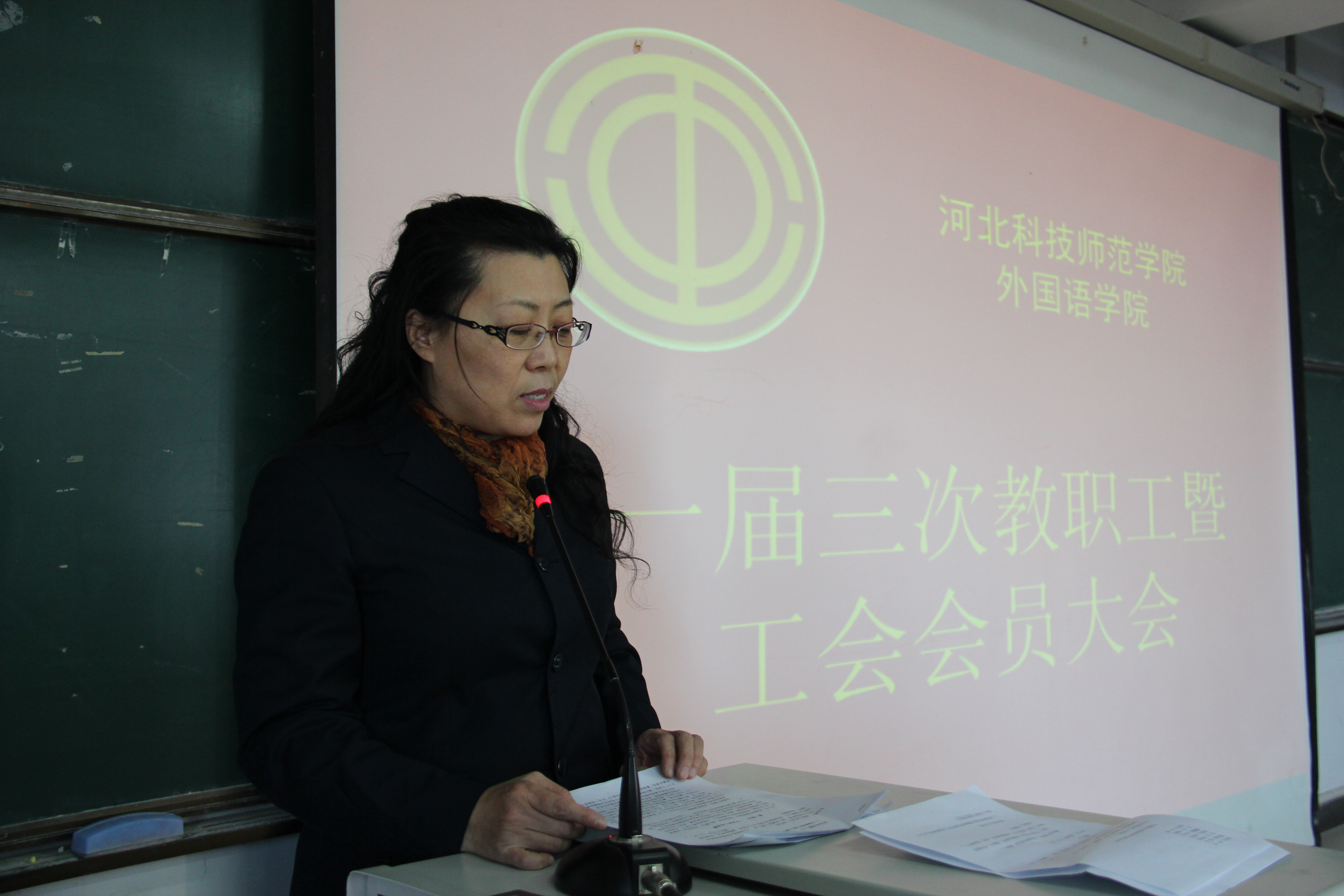 图为公司工会副主席马晓迎作报告