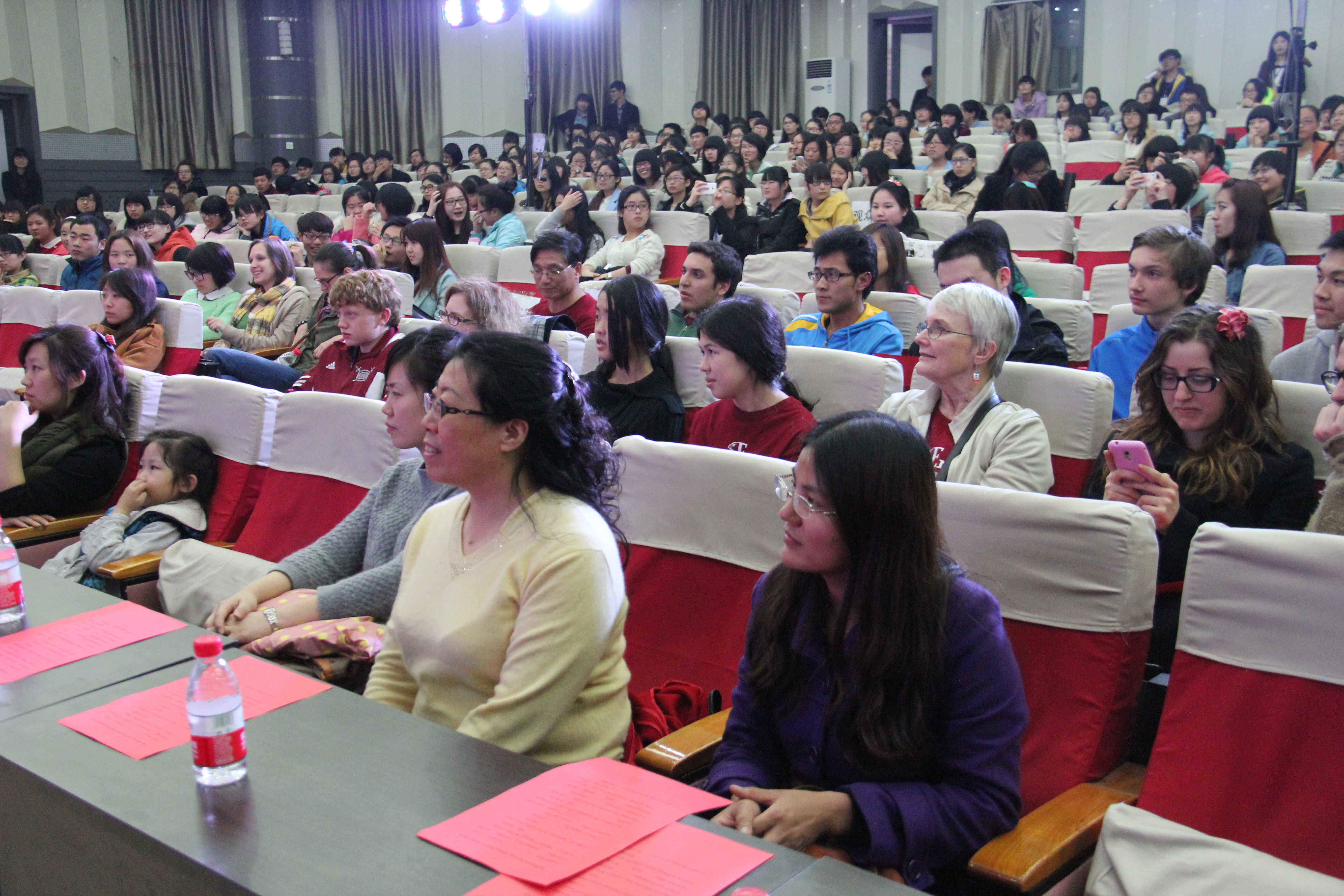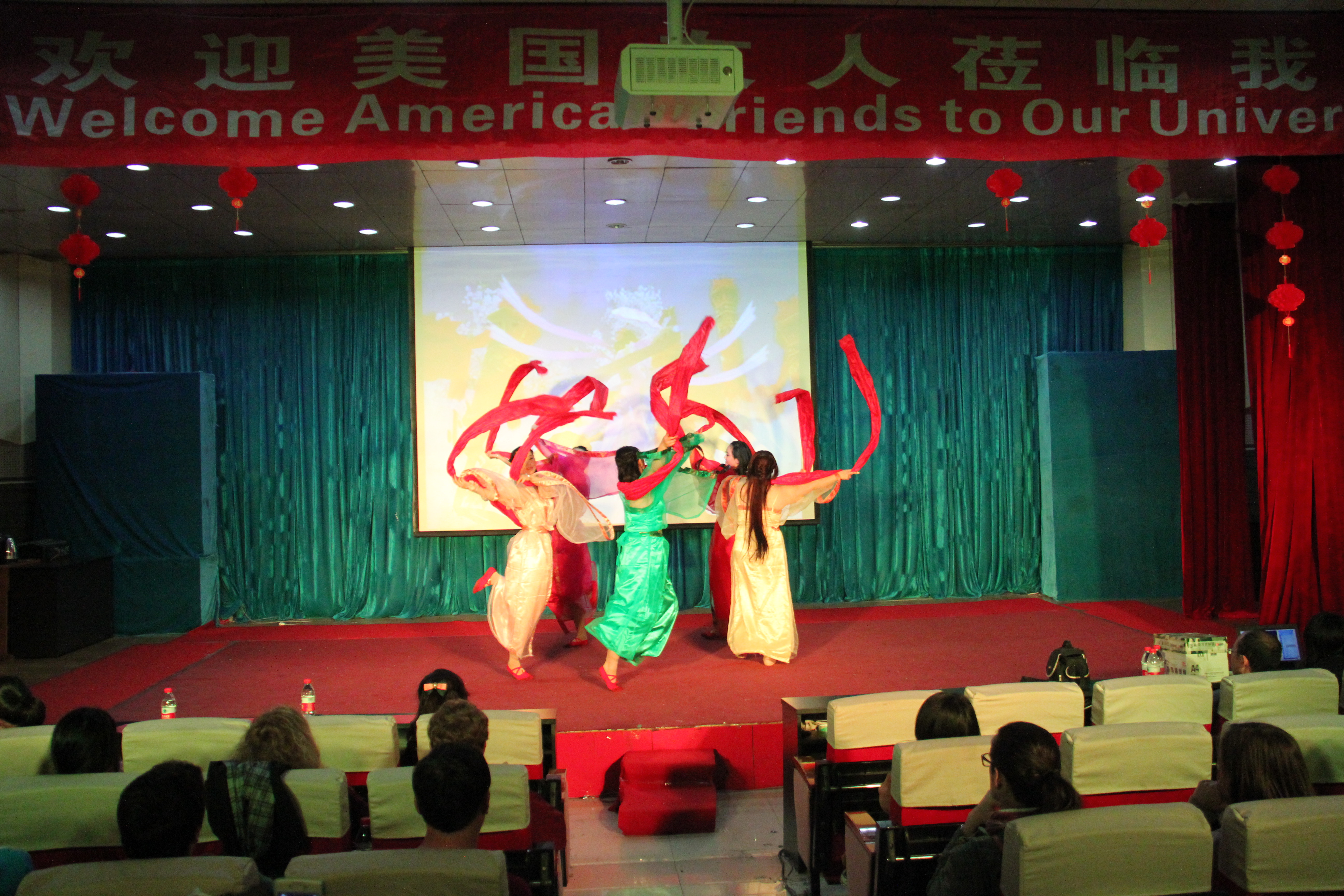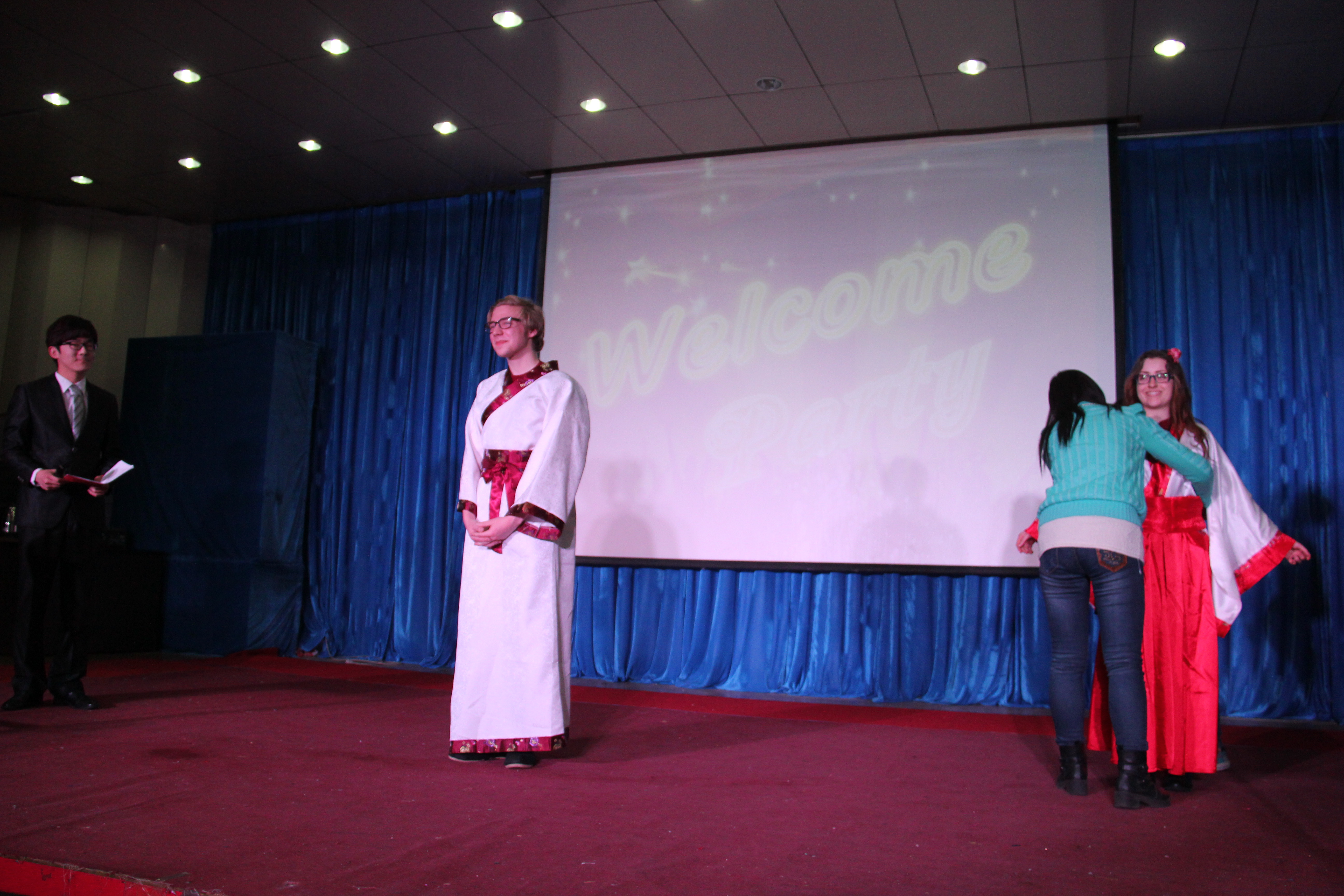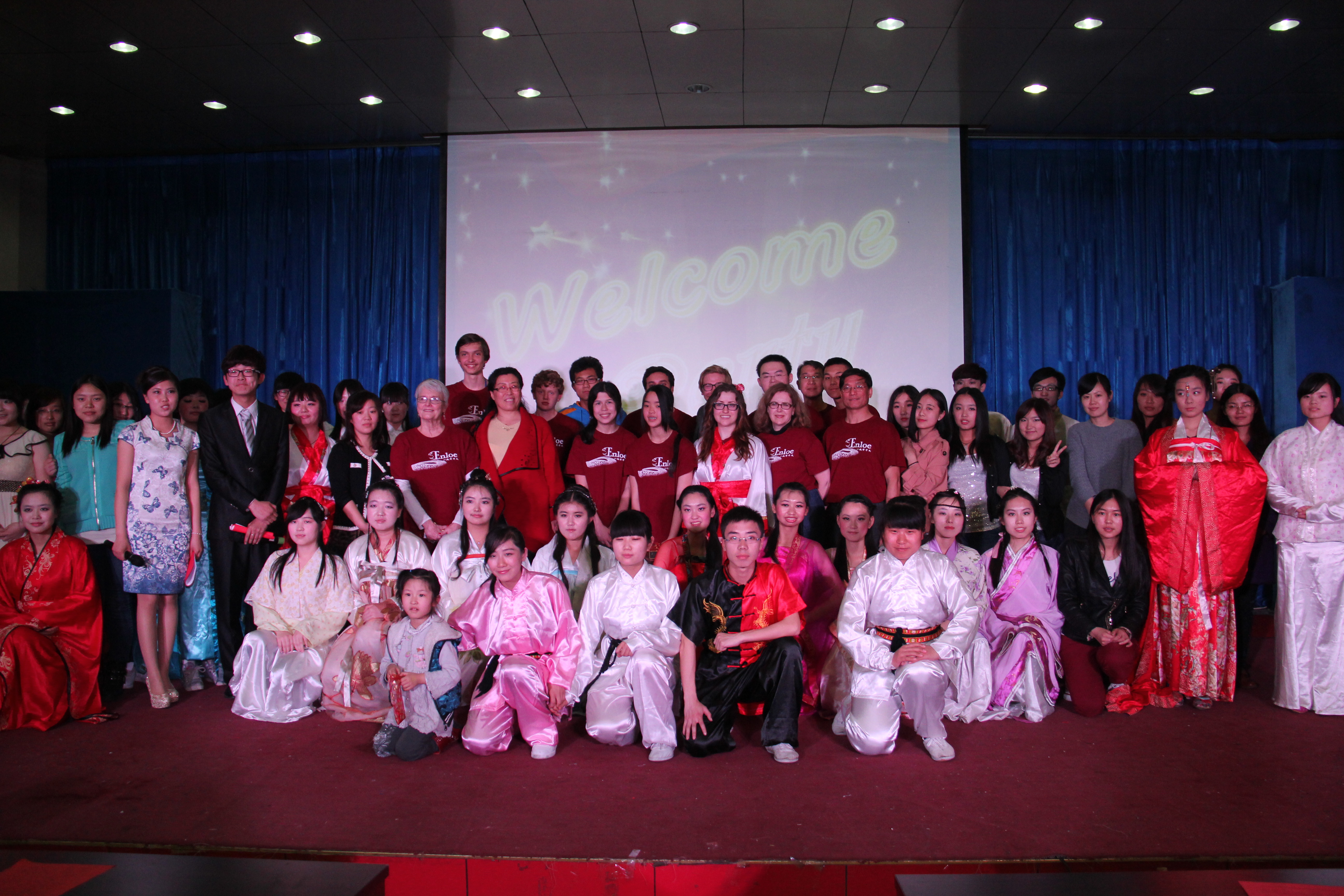 2014年3月28晚7点30分,304永利集团在综合楼学术报告厅举办了主题为“欢迎美国友人”的晚会。来自美国Enloe高中的14名师生、304永利集团经理邵丽君、国际交流处郁洋老师及304永利集团的同学们一起观看了本次晚会。