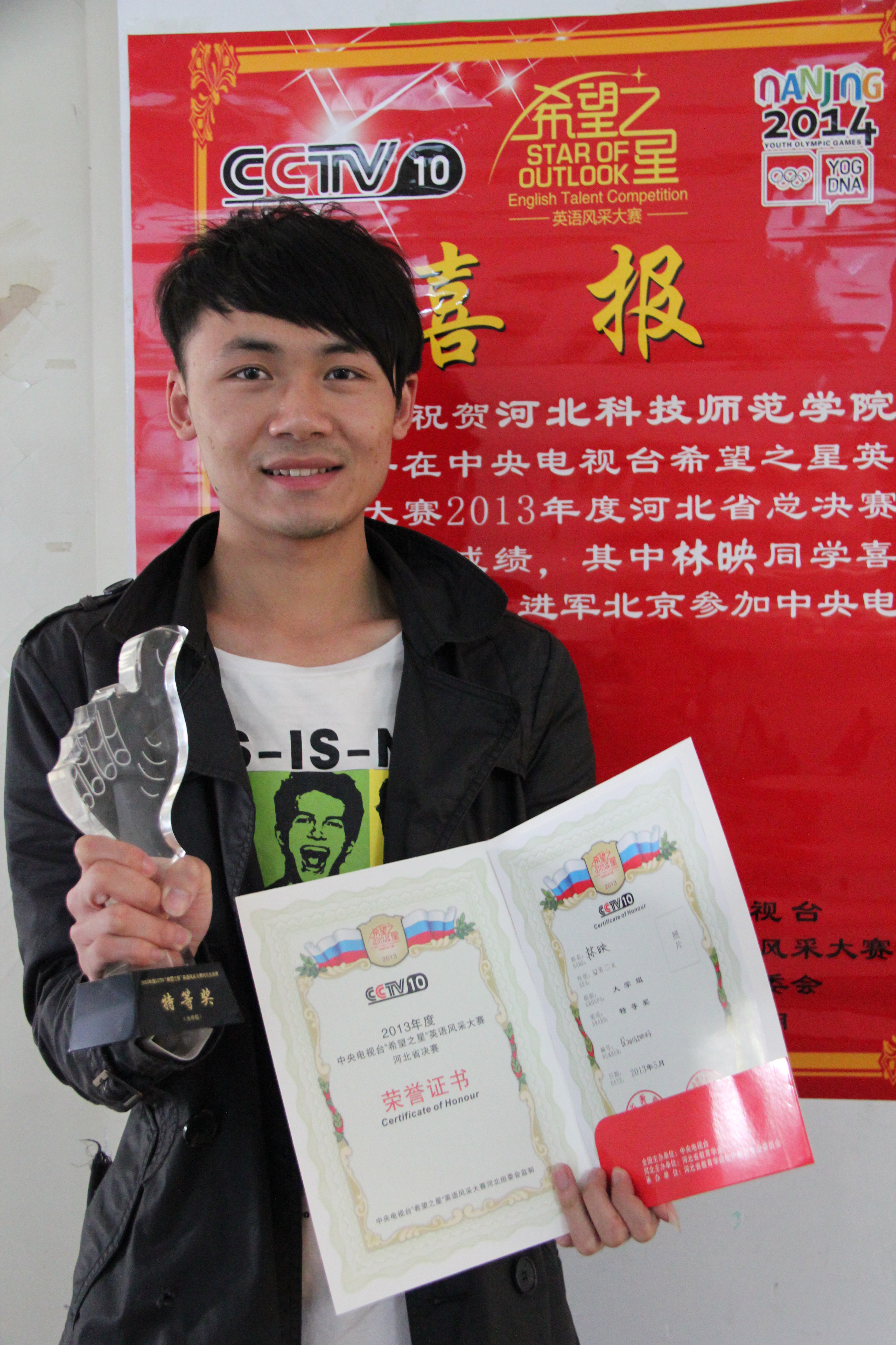 公司选手在河北省希望之星英语风采大赛总决赛中表现优异,其中304永利集团员工林映获得河北省季军,将进军北京中央电视台参加总决赛。另有马璐阳、刘德华、李永坊、陈瑶瑶四名同学获得二等奖。
