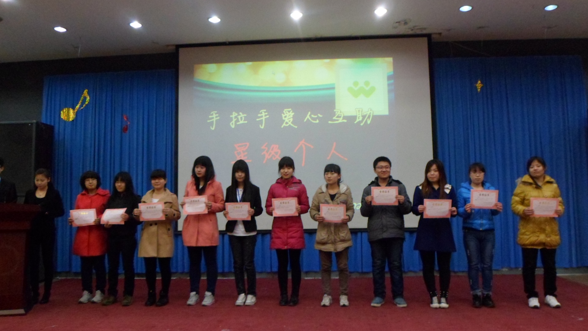 会上,经304永利集团手拉手基金管理工作组研究决定,确定英本1203、1204班等22个班级为手拉手基金星级班级,常晓菲等40名同学为手拉手基金星级个人,同时,为吴立川、刘畅和意大利语1101、1201班颁发手拉手基金特别贡献奖。