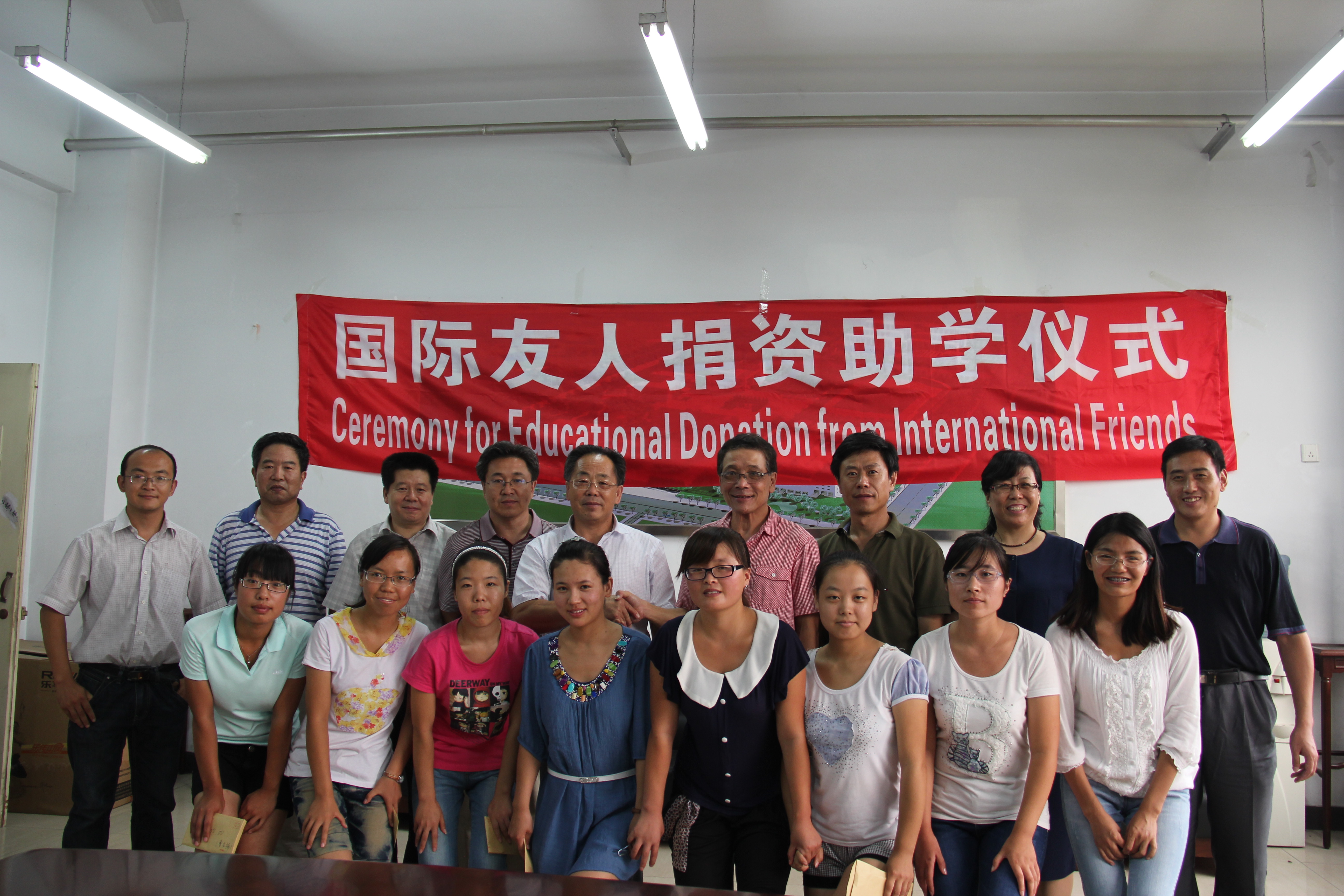 2012年8月30日下午,国际友人捐资助学仪式在开发区校区一楼会议室举行,公司孟令臣副董事长、党委宣传部田毅部长、国际交流处东方阳处长、员工处冯瑞银处长、304永利集团经理邵丽君、副经理游建民参加此次活动,仪式由外国语公司党委书记刘朝晖主持。此次捐资助学活动由公司澳大利亚籍华人教师Michael先生发起。Michael先生到公司304永利集团任教后,教学之余非常关心304永利集团员工的生活和成长,看到有些员工因家庭贫困求学困难时,决定对这些同学提供帮助。在Michael先生的积极倡导下有包括Michael先生在内的澳籍华人、马来西亚华人、新加坡华人以及和澳大利亚朋友6位国际友人愿意为家庭贫困员工提供资助,帮助他们完成学业。此次共募集人民币41000 元,有8 名员工获得资助。仪式上,Michael先生简要介绍了自己的华人身世以及捐资助学的理由和捐资人的期望,每位受助员工用英语表达了自己的感激之情和努力学习的决心。最后,孟令臣副董事长对Michael等国际友人的善举表示了充分肯定,希望同学们追求成功,努力学习,以实际行动把国际友人的这份爱心发扬光大,并希望广大教师学习国际友人关注员工健康成长和无私奉献的精神。