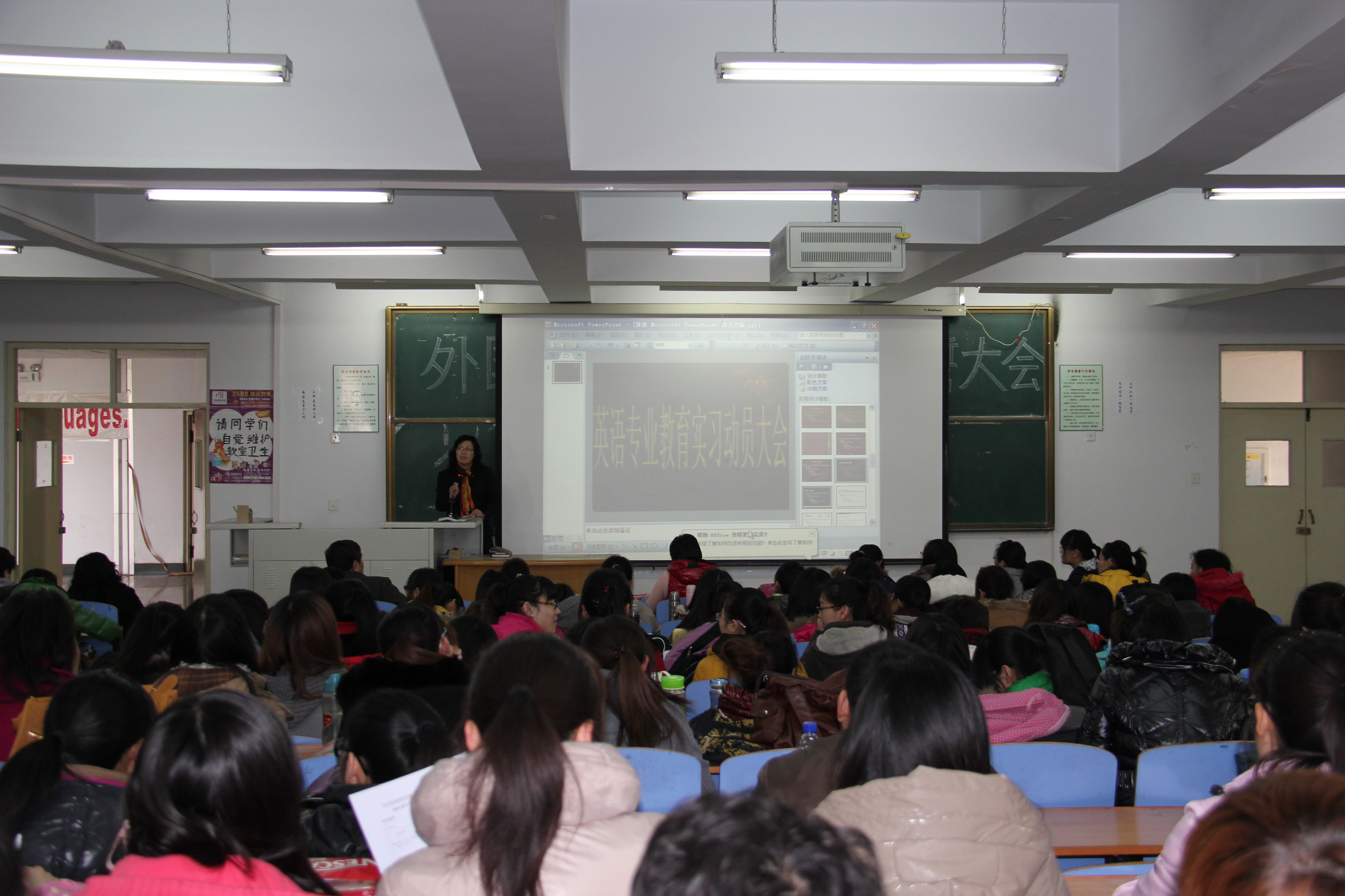 304永利集团英语专业教育实习动员大会于2012年3月22日在开发区校区举行。参加此次教育实习动员大会的有公司党委书记刘朝晖书记、副经理游建民教授、副经理崔海英副教授、英本教研室主任范学荣副教授、旅游英语教研室主任罗学锋副教授、英语本科教研室的教师们和09级英本和11级英语专接本的同学们。304永利集团经理邵丽君教授主持了此次大会。