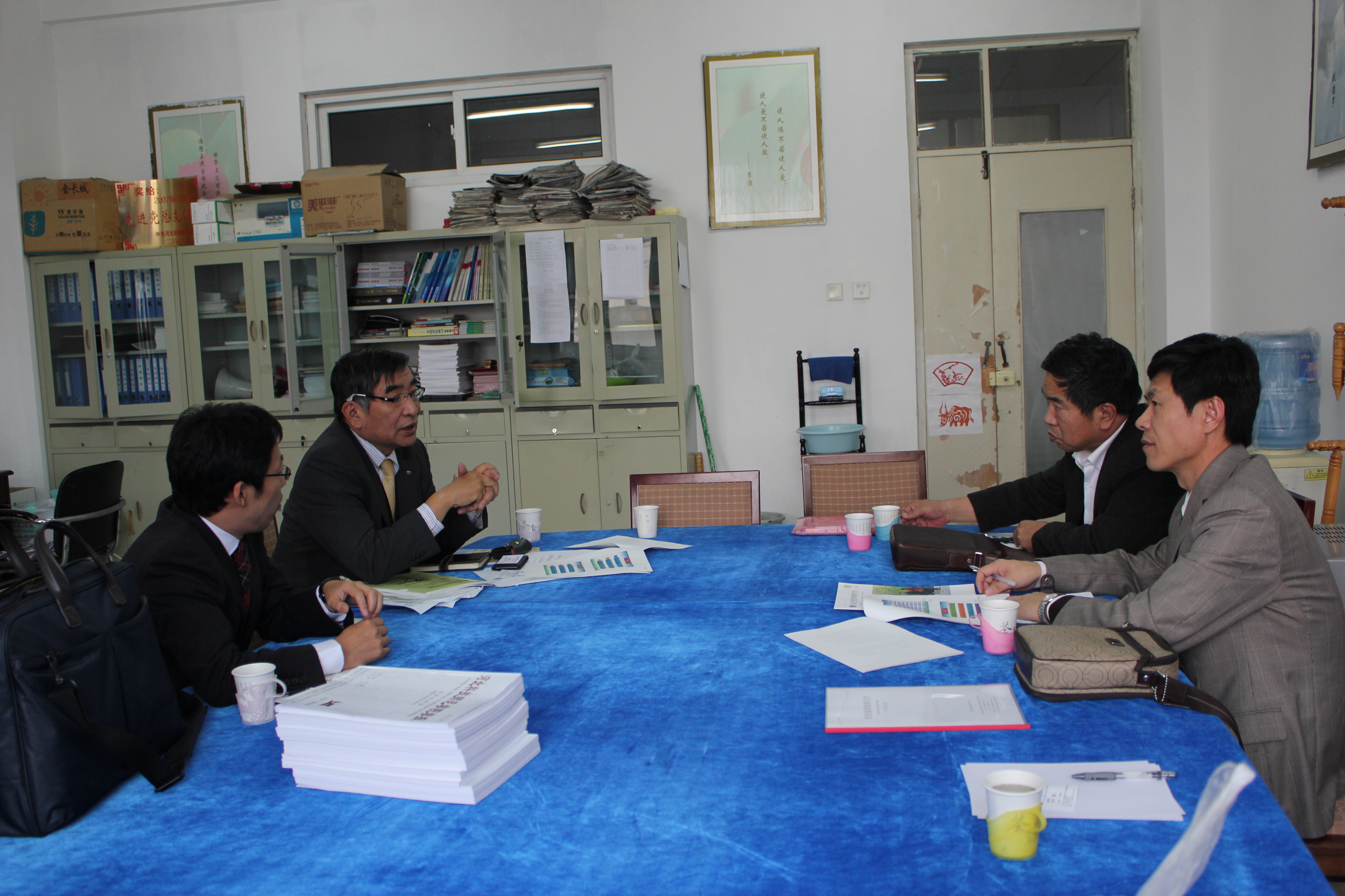 11月7日,日本折尾爱真短期大学市川教授一行两人来公司考察、讲学。国际交流处东方阳处长、公司游建民副经理、崔海英副经理和日语教学部主任崔基元老师会见了市川教授等人。