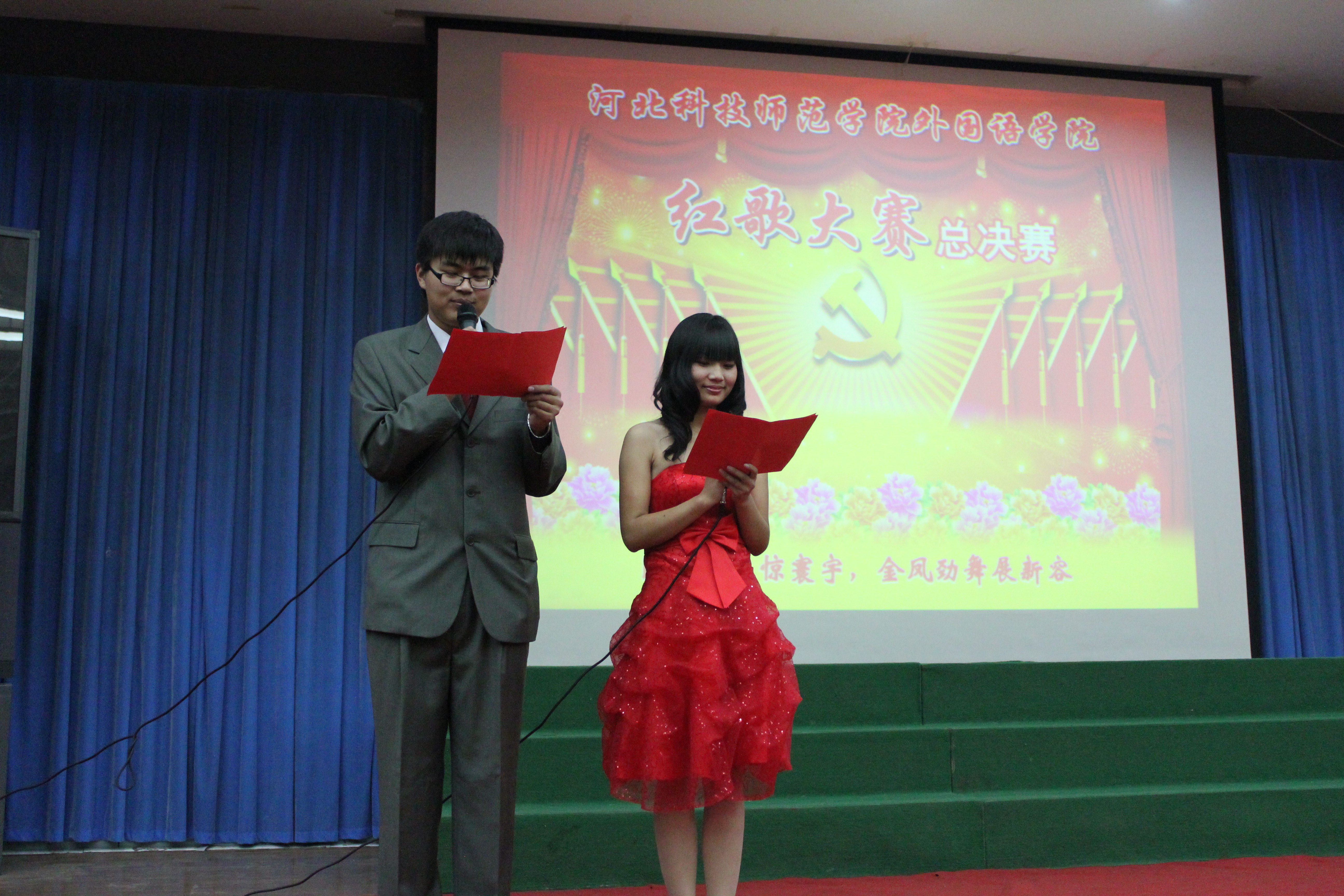 比赛在观看国庆大阅兵的庄严氛围中隆重开幕。参加比赛的班级为师生们带来了一场别开声面的视听盛会,比赛中员工们激情饱满,活力四射。旋律优美动人心弦,歌声嘹亮铿锵有力。《红色娘子军》、《国家》等一首首耳熟能详的红色歌曲唱出了同学们敢为人先,争创一流的时代风采,激起了大家对党对祖国的无限热情。手语、朗诵、武术、歌曲串烧、短话剧等多种多样的形式把比赛一次次推向高潮,台下不时爆发出热烈的掌声和激情的呐喊声。经过激烈的角逐,英本1001班最终以总分第一的成绩荣获桂冠,旅游英语1002班及英本1002班获得季军。