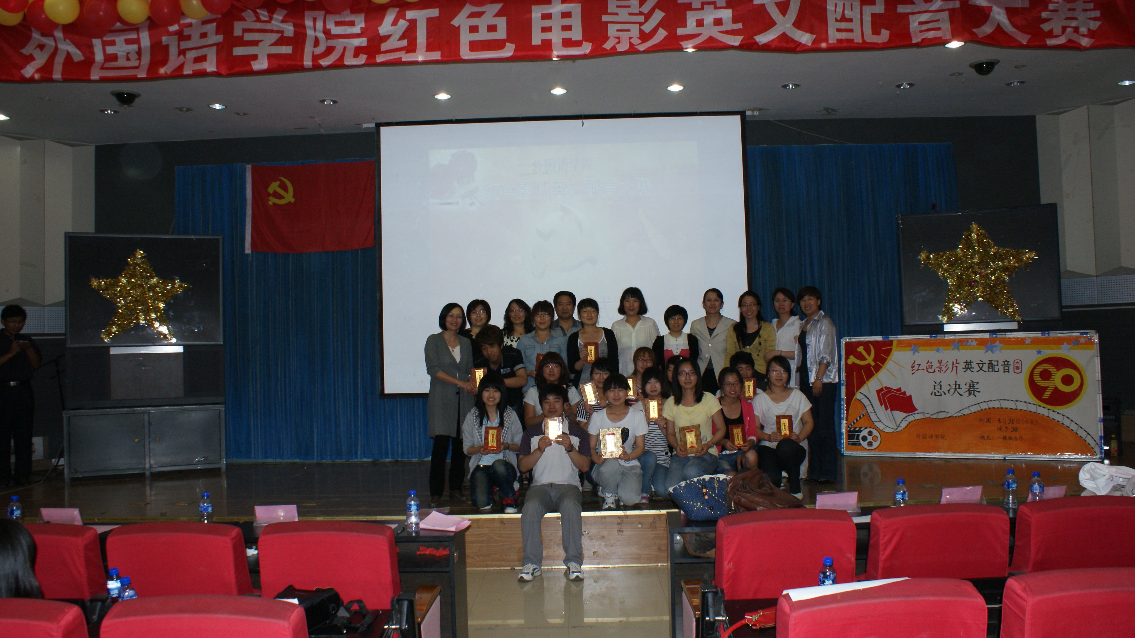 2011年5月31日晚,由304永利集团主办的2011年第一届红色影片英文配音大赛在开发区校区学术报告厅隆重举行。担任本次比赛的评委有304永利集团应用英语教学部主任马晓迎老师,商务英语教学部主任洪爱云老师,专业英语教学部刘丽敏老师、宋洁老师,公共外语教学部樊荣萍老师、罗翠丽老师、王力老师。出席本次比赛的嘉宾有外国语公司党委书记刘朝晖老师,外国语公司党委副书记、副经理宋文华老师,304永利集团副经理游建民,304永利集团副经理崔海英老师,四百余名员工出席观看了本次大赛。