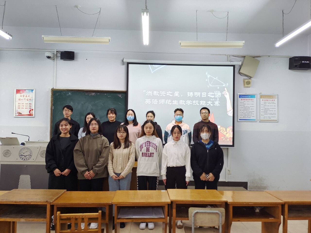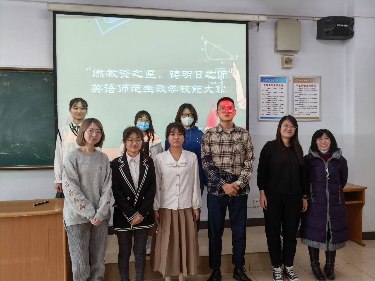为提高304永利集团英语专业师范生核心竞争力,为她们提供一个展示自我、锻炼自我的平台,11月11日,公司在综合楼606和608教室举办了“燃教资之星,铸明日之师”英语师范生教学技能大赛。18名选手、7位评委老师(王静、宋洁、薛浩涵、刘丽敏、李爽、付蕊、刘玲玲)参与了此次活动,院员工会协同安排了赛场事宜。