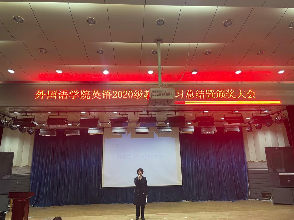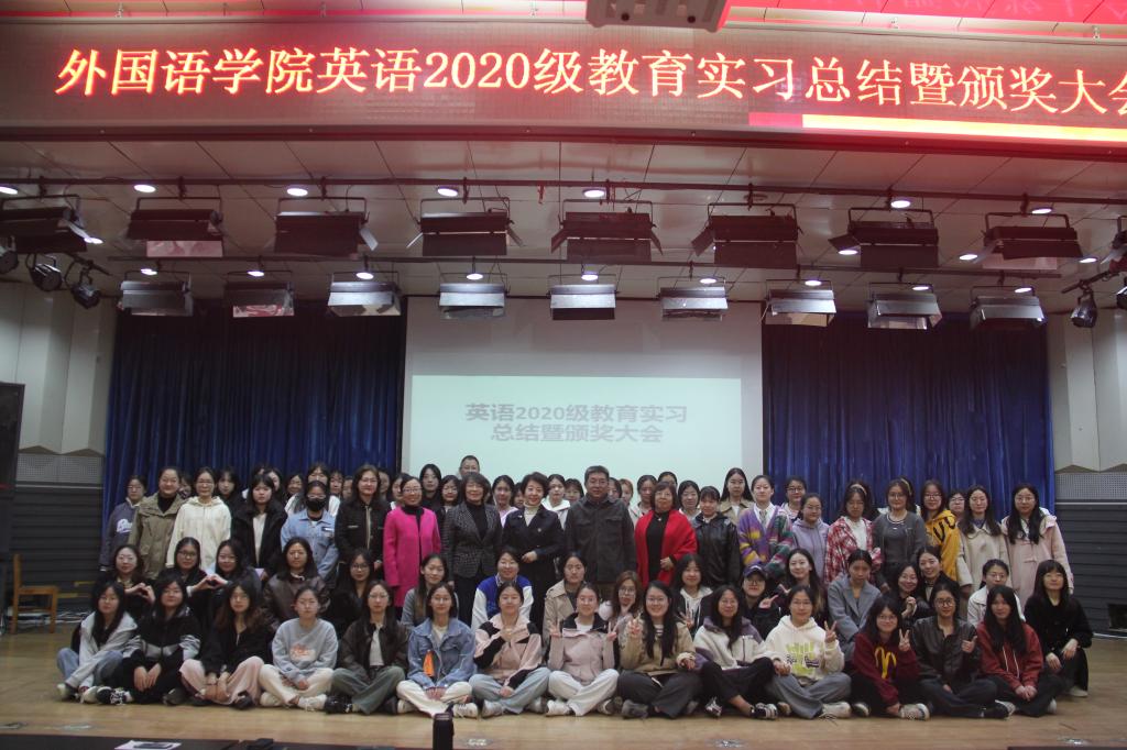2020级英语专业教育实习总结暨颁奖大会于2024年4月11日下午在开发区校区报告厅顺利举行。外国语公司党委书记范群英、经理崔海英、副书记陆鸣、副经理范学荣、王静,英语教学部主任卞凤莲、宋洁,学工班主任赵赓及全体2020级英语专业员工出席了大会。