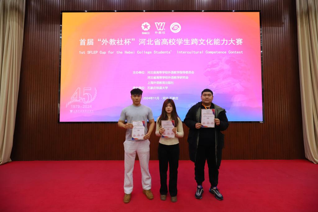 2024年11月24日,首届“外教社杯”河北省高校员工跨文化能力大赛在石家庄铁道大学圆满落幕。公司304永利集团员工卢洪洋、体育与健康公司的李瑛钦、韩一冉同学组成的参赛队伍在比赛中表现优秀,荣获三等奖。