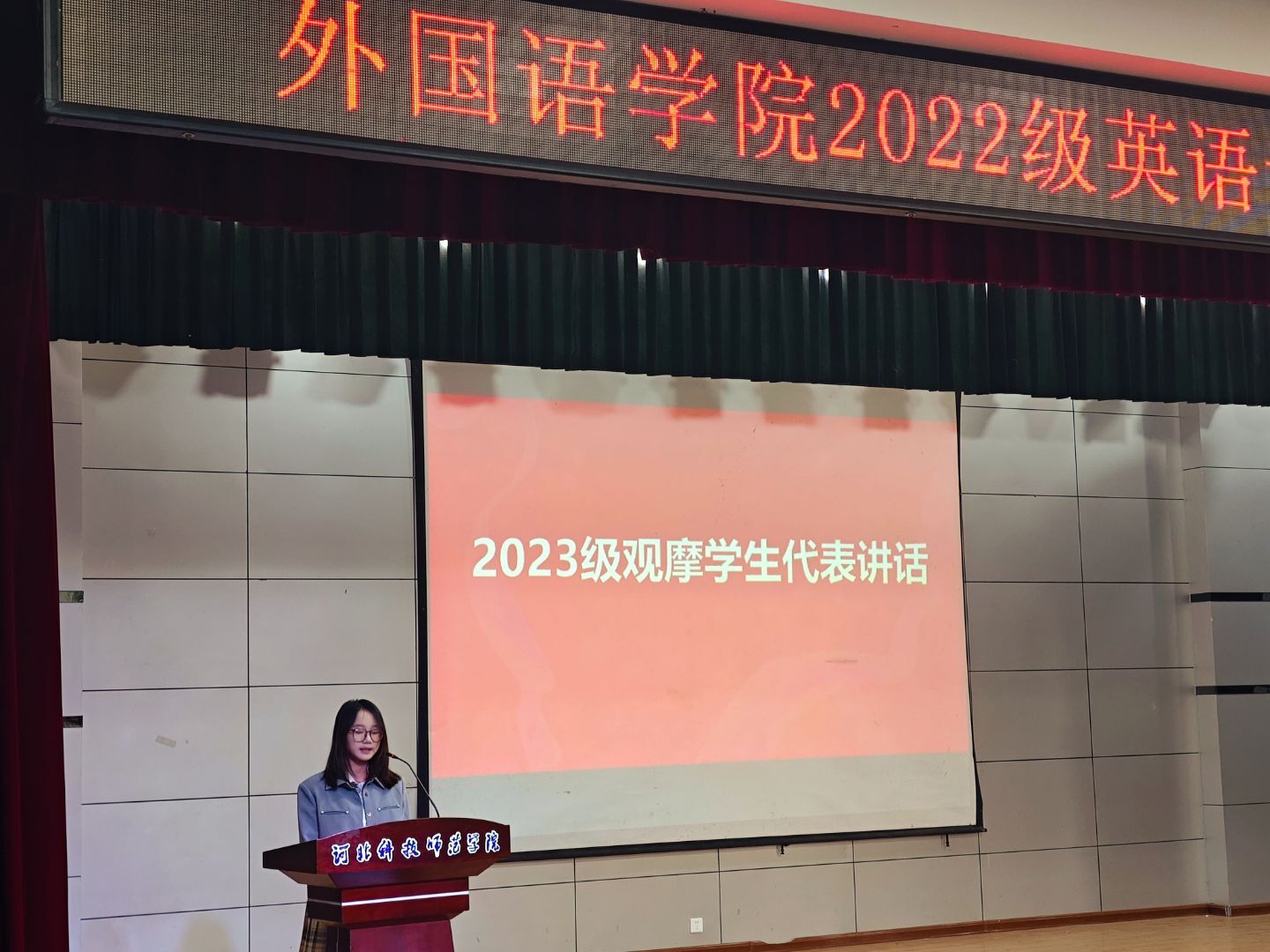 作为观摩的2023级员工代表李思轩同学发言,表达了通过观摩实习总结活动所获得的启发与动力,展现了新生代外院人对未来教育实践的信心与期待。