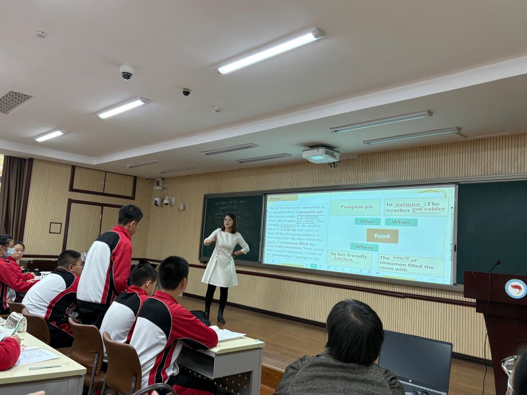 本次活动秉持 “以研促长、辐射全区” 的初心,搭建了理念碰撞与实践交流的优质平台。活动核心环节中,逸城中学的魏悦老师带来示范课《Unit5 Section B reading》(八年级上册),这节课作为工作室 “AI + 大单元 + 学为中心” 教学模式的探索成果,充分展现了技术与课堂的深度融合。课堂上,AI 技术的巧妙运用为教学注入新活力,大单元教学的逻辑脉络清晰连贯,而 “学为中心” 的教育理念则让课堂充满温度,生动诠释了名师工作室抱团成长、精研教学的实干精神。