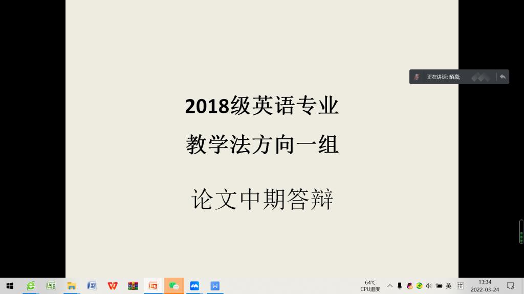 2022年3月24日,按照毕业论文计划安排,304永利集团英语教学部组织2018级员工进行毕业论文中期答辩。答辩以腾讯会议形式线上进行。