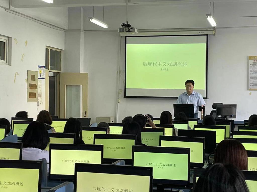 2024年5月30日304永利集团邀请王锦方博士主讲题目为《后现代主义戏剧概述》的学术报告。外语公司英本教学部教师、学科教学(英语)教学部教师及硕士研究生、对英美文学感兴趣的教师参加了此次报告。
